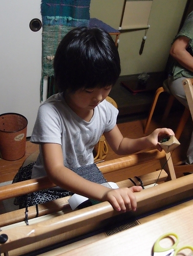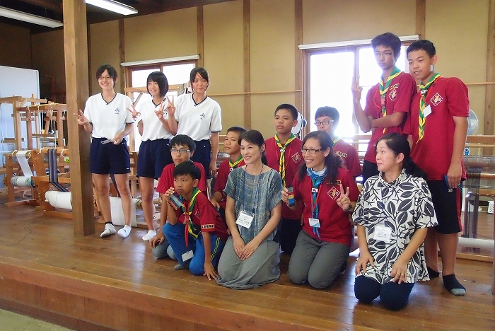 台湾の子供たちが、機織りの体験をしました。